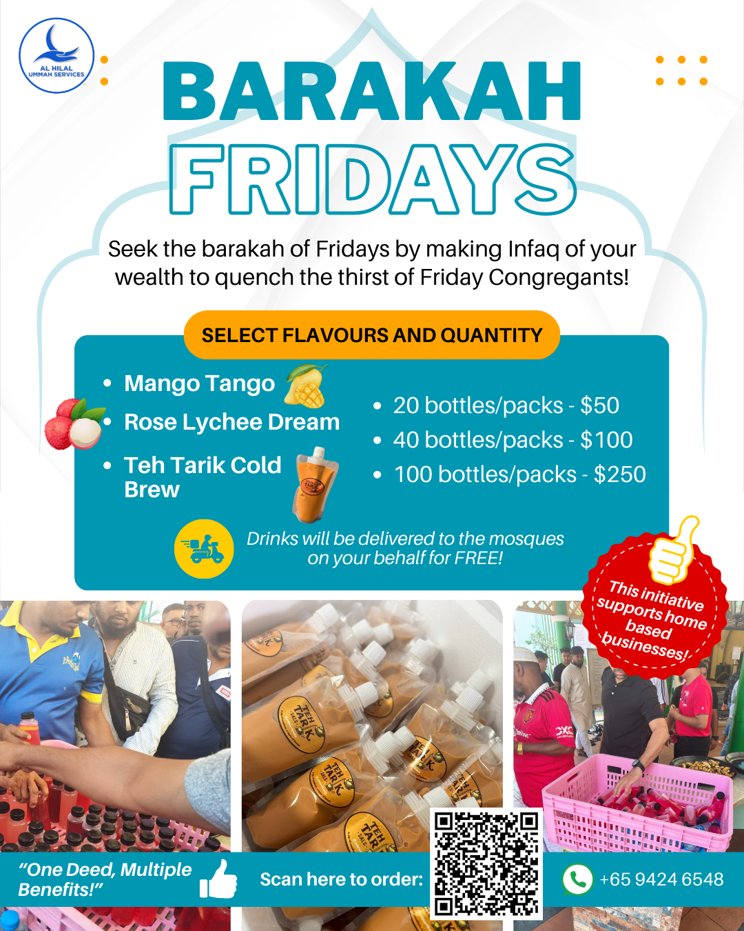 Quench the thirst of Jumaah Congrgants by Sponsoring Drinks every Friday.